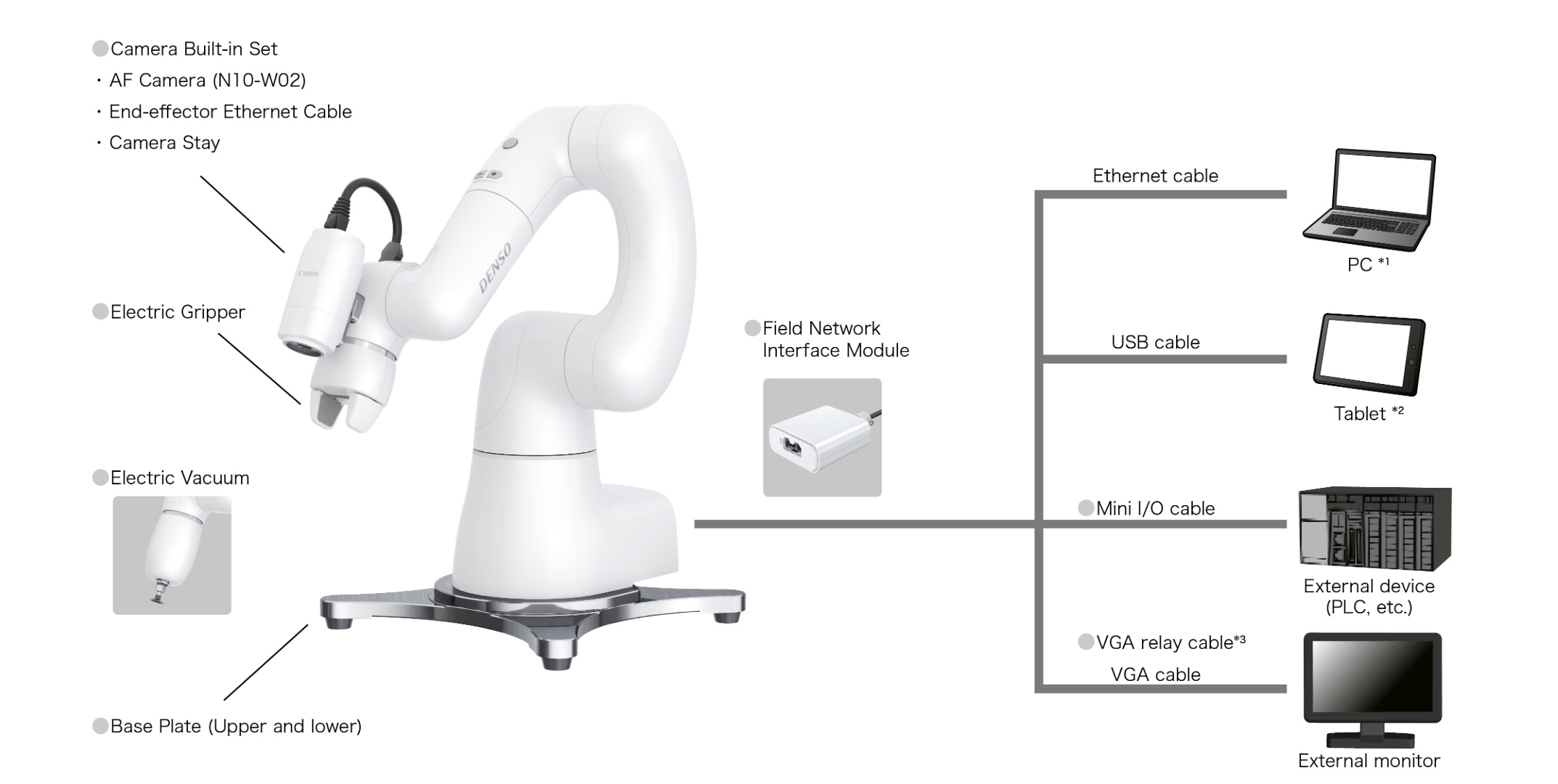 Équipé d'une fonction d'enseignement direct et d'une interface graphique intuitive pour une programmation facile. Une caméra en option peut être montée pour permettre l'enseignement à l'aide de la caméra.