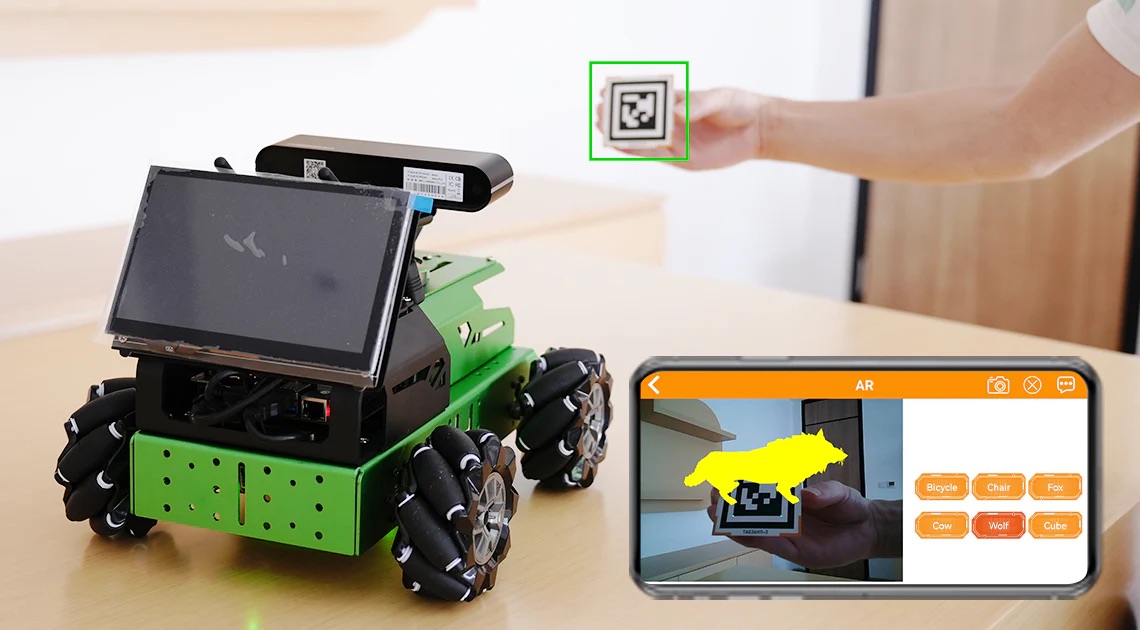 JetAuto est capable de reconnaître et de suivre la couleur désignée, et peut reconnaître plusieurs balises d'avril et leurs coordonnées.