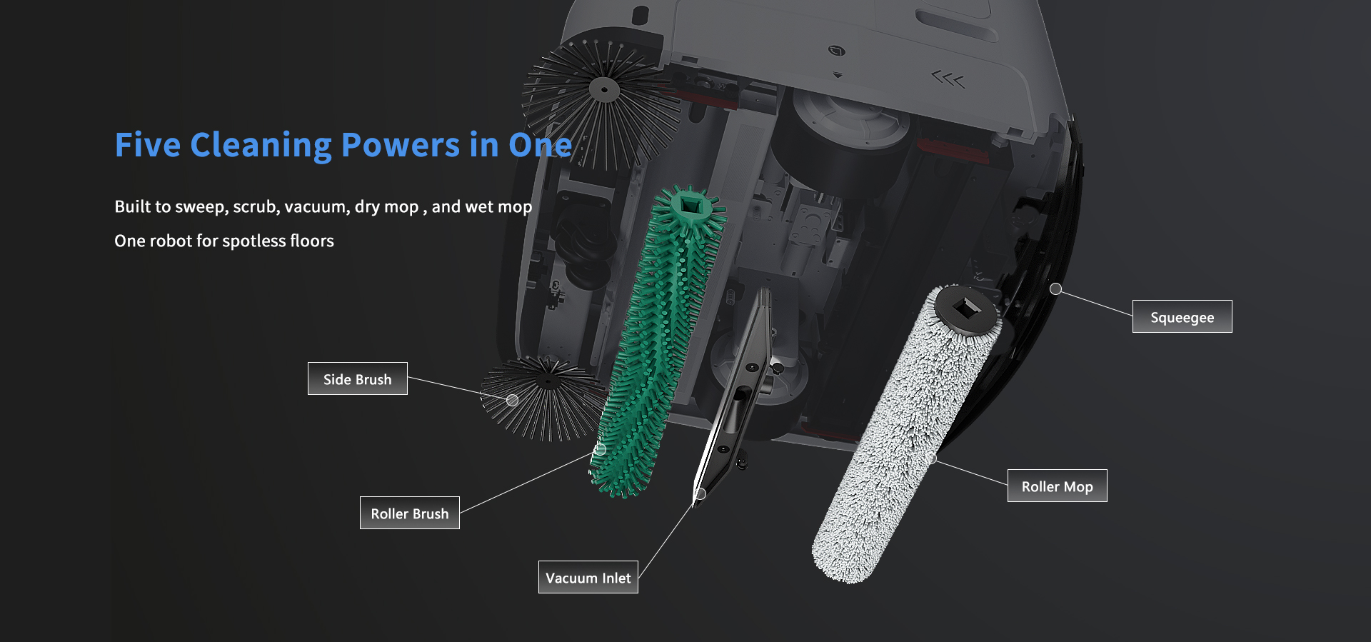 Brosses auto-nettoyantes et réservoirs d'eau propres/récupérés amovibles