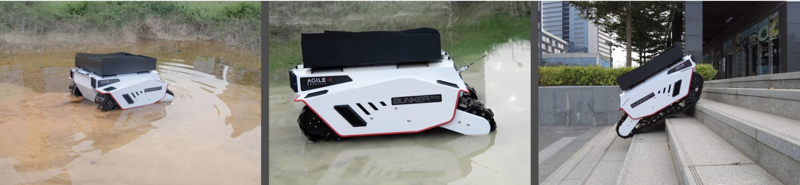 Bunker Pro est une plate-forme mobile à voies de navigation en UV, habile à naviguer dans des environnements difficiles comme les sols mous, les pentes abruptes, les flaques d'eau et les ponceaux de boîte. Avec son extérieur en acier, sa capacité de 120 kg et sa batterie de longue durée de vie offrant plus de 3 heures de fonctionnement, il offre durabilité et polyvalence pour diverses tâches.